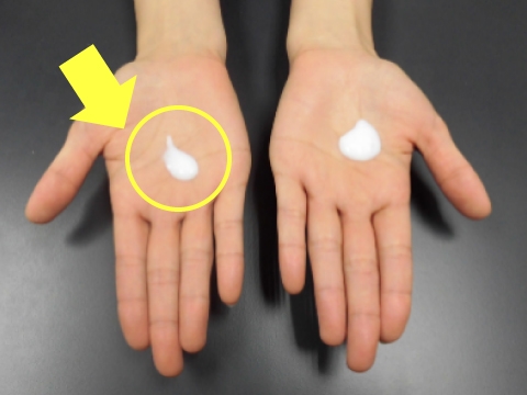 まずは、汚れに見立てた蛍光ローションを手に塗ります。
