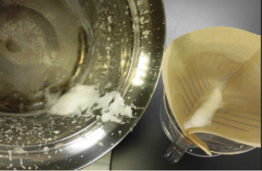 さらに煮詰めて、2回目に濾した白い結晶は、主な成分が塩化ナトリウムつまり「塩」でした。