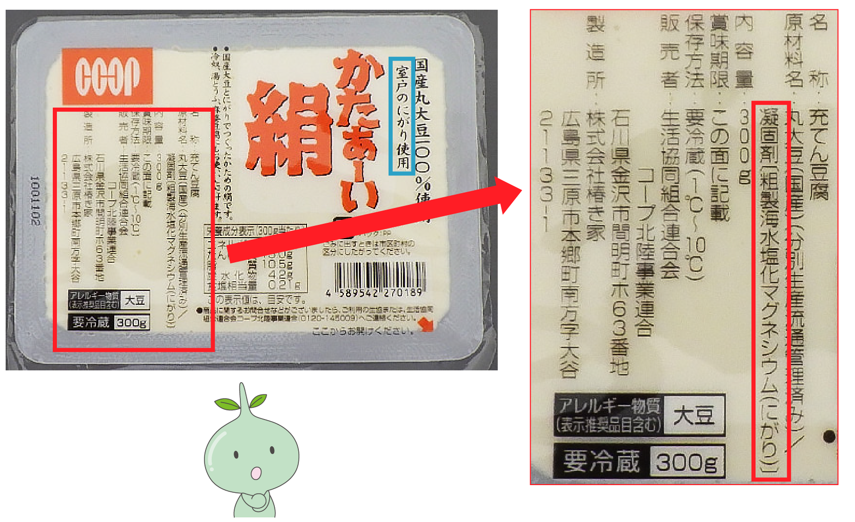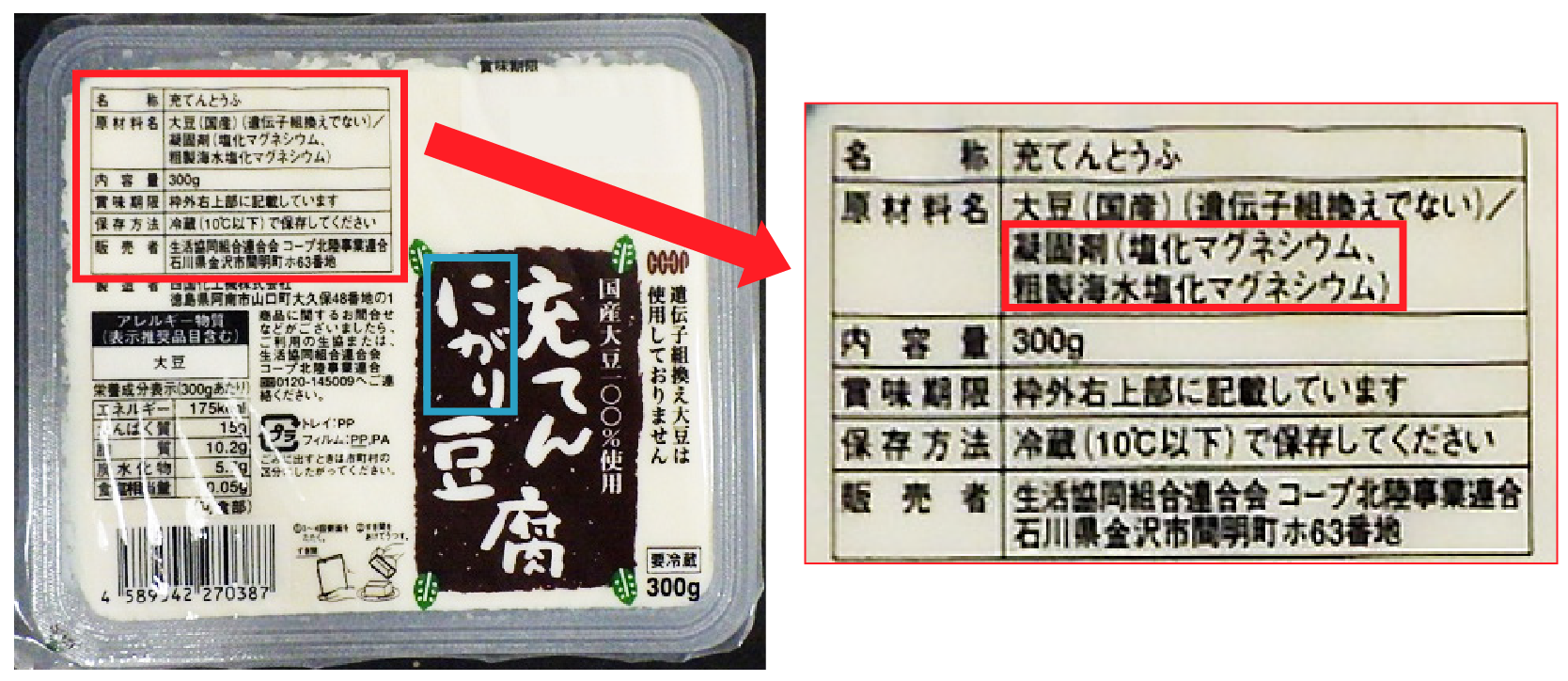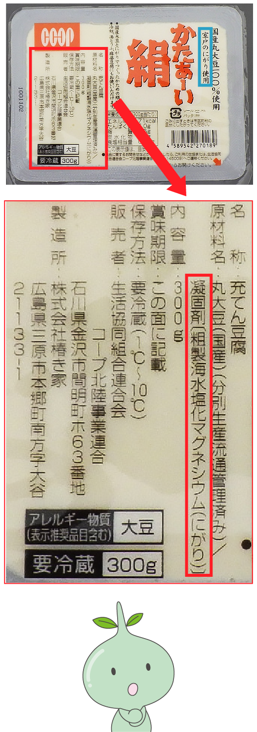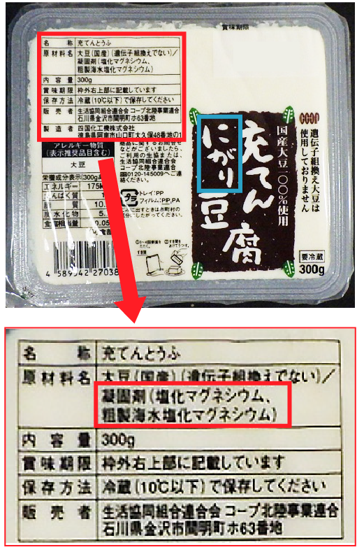 食品には「凝固剤」という「食品添加物」として表示されています。